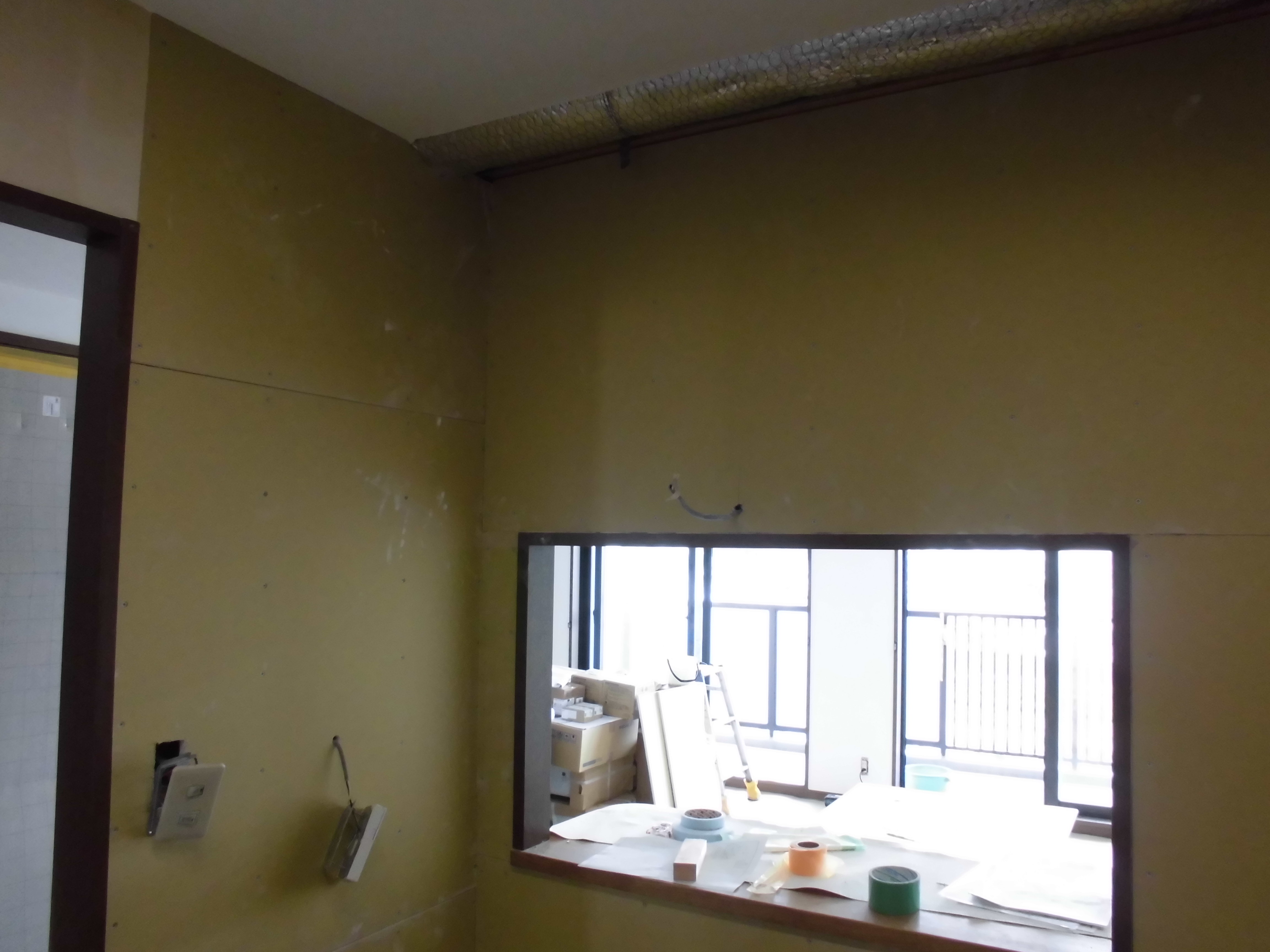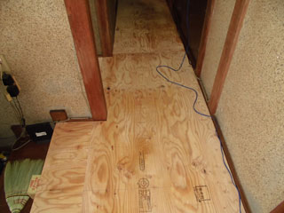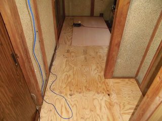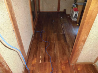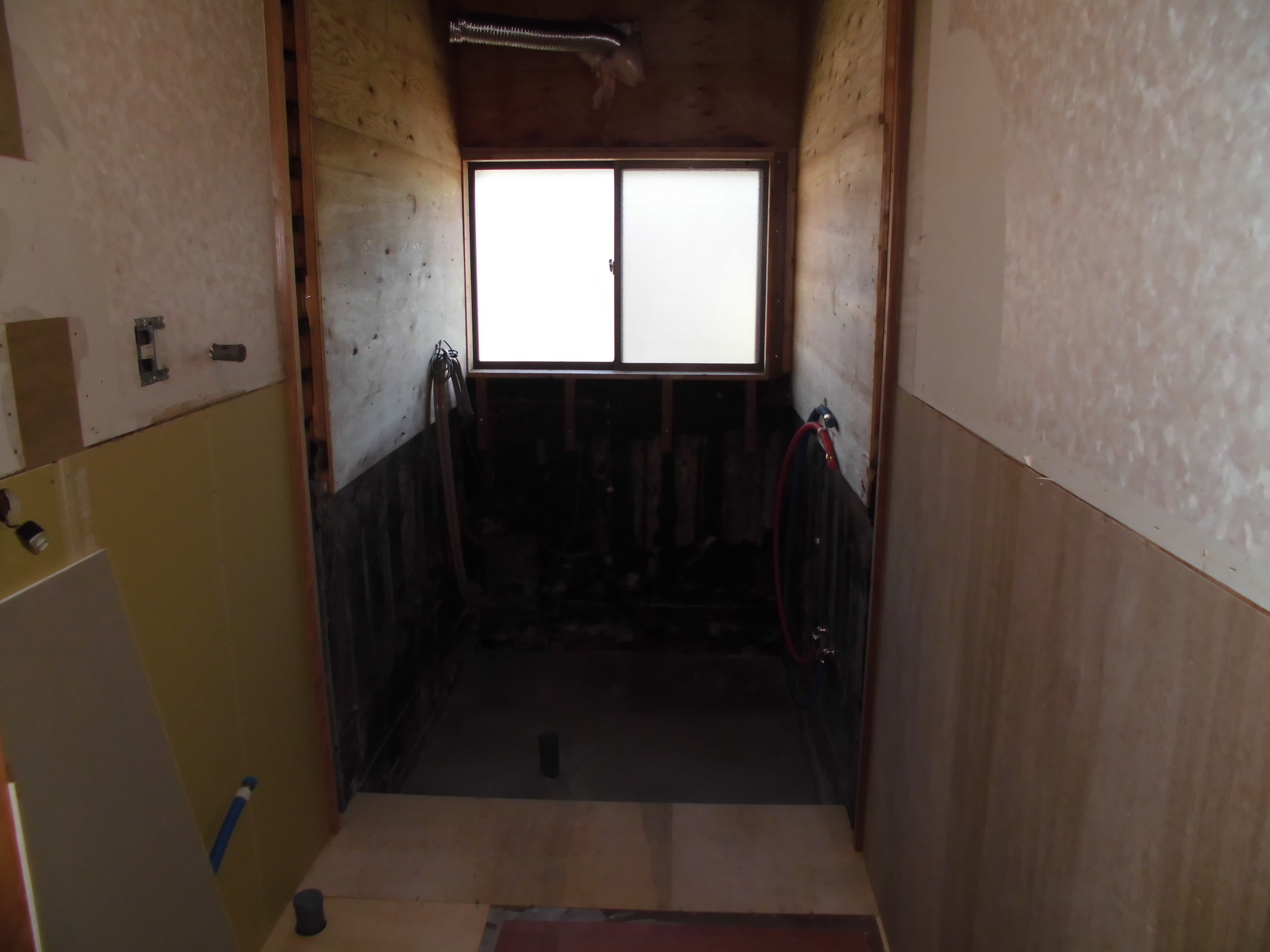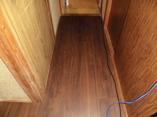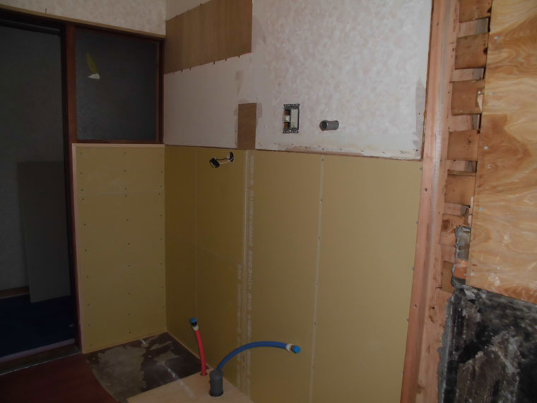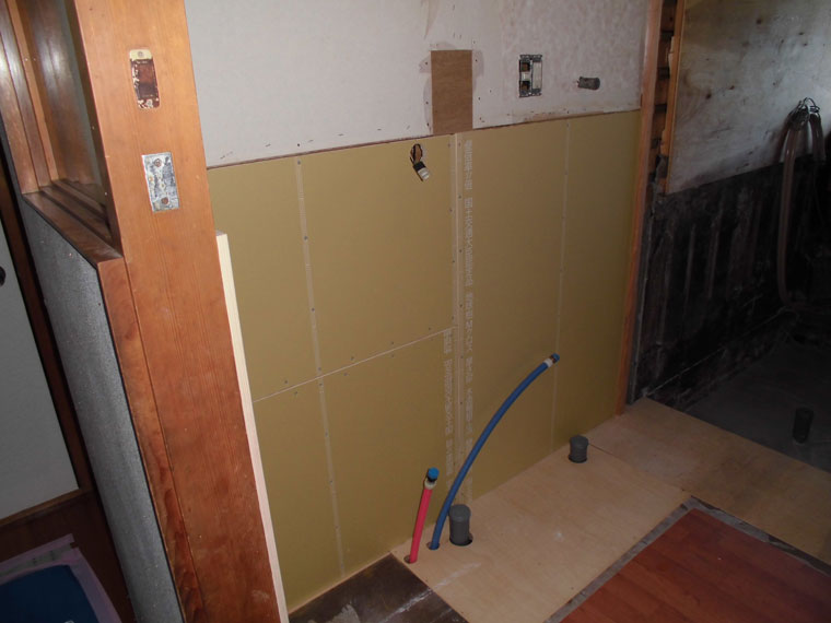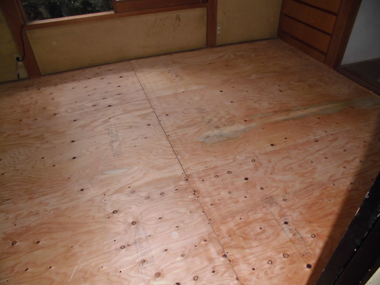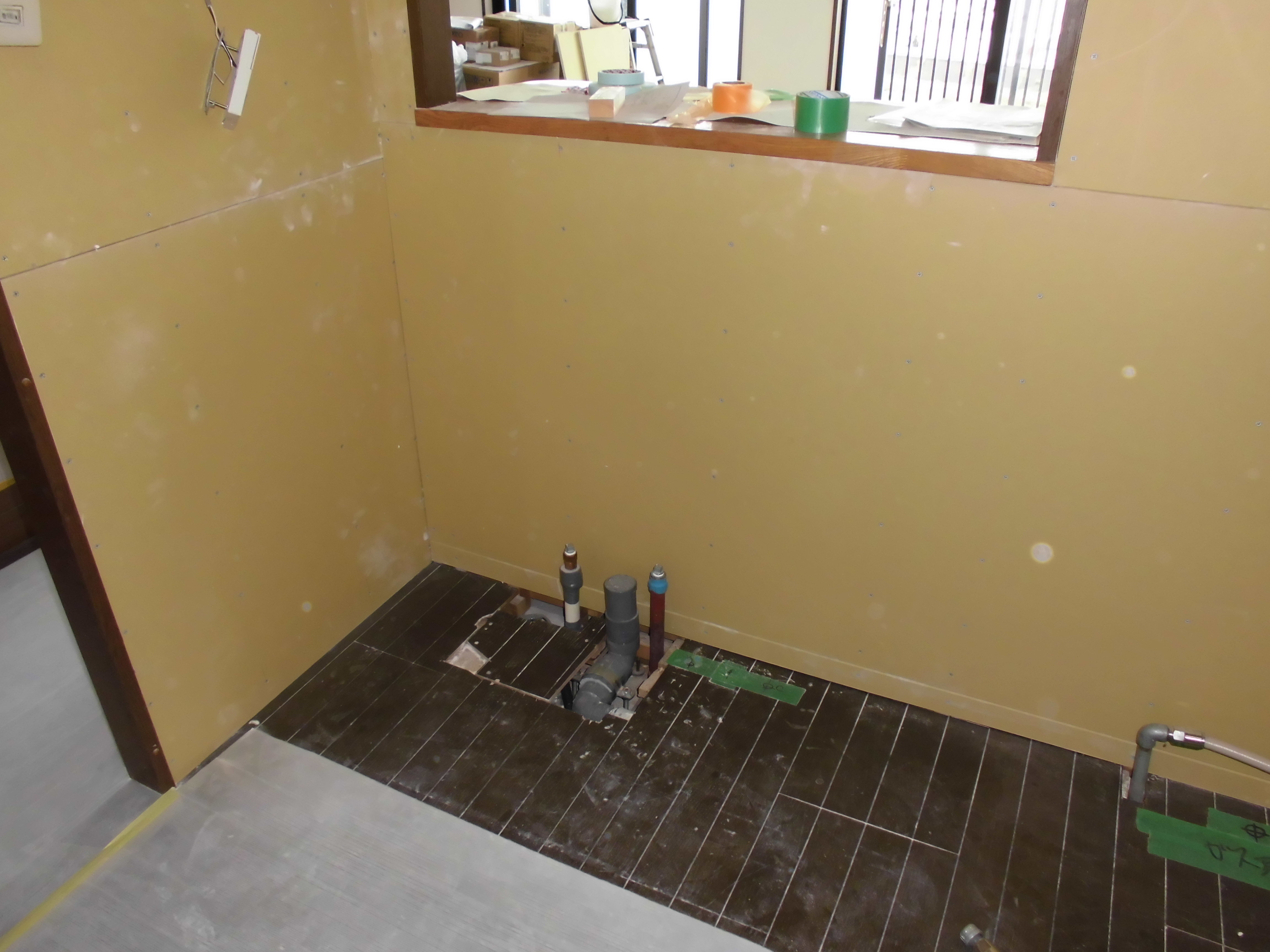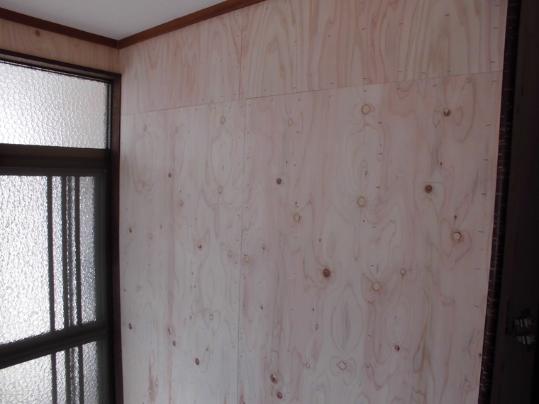 壁の下地を入れなおしたりして壁を貼って床も補修しました。