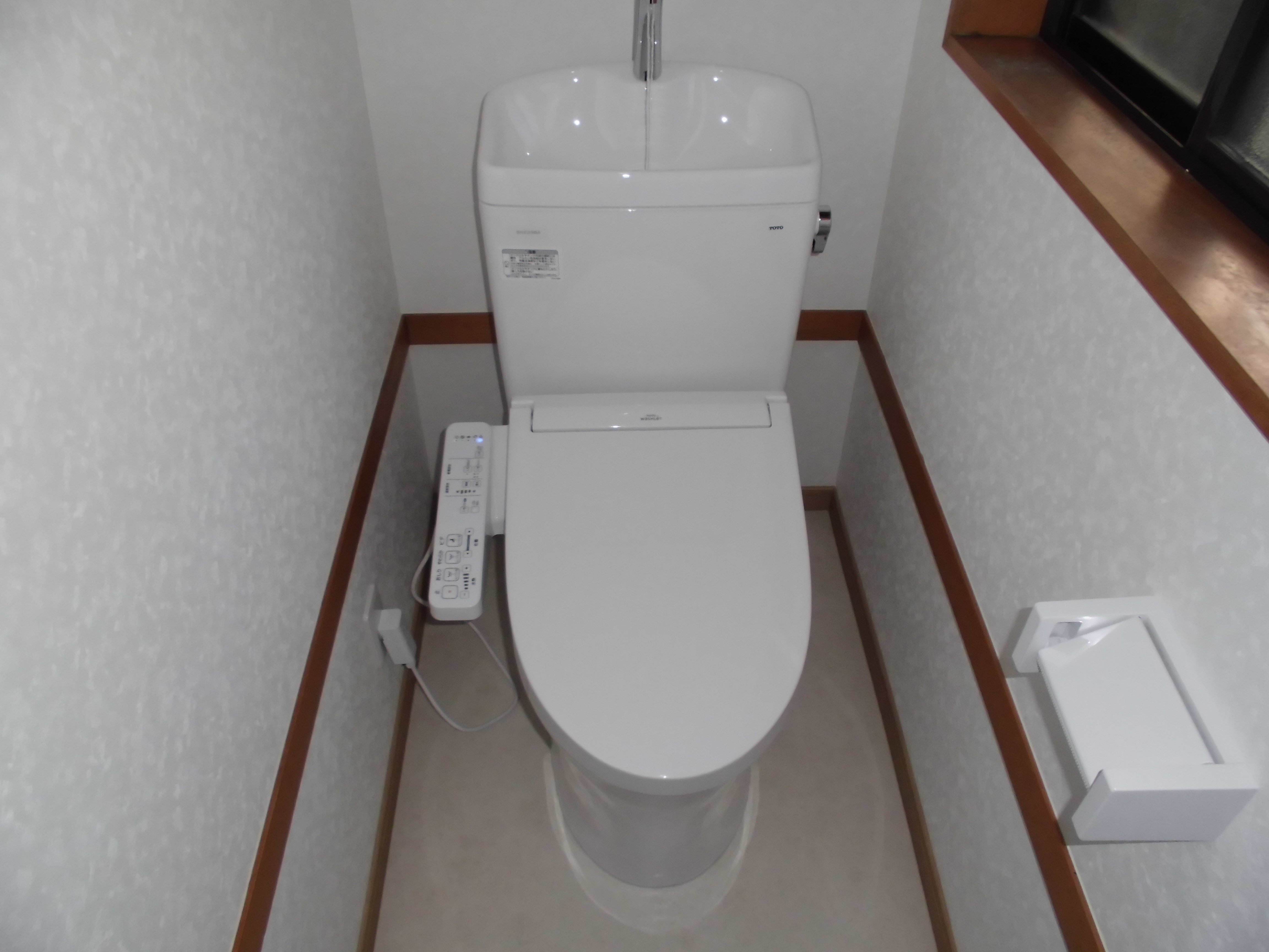 お施主さんの希望に答え浴室換気暖房乾燥機と洗面所暖房機を取り付けたり、脱衣場が狭いので洗面化粧台にサイドキャビネットとトールキャビネットをつける工事も行いました。