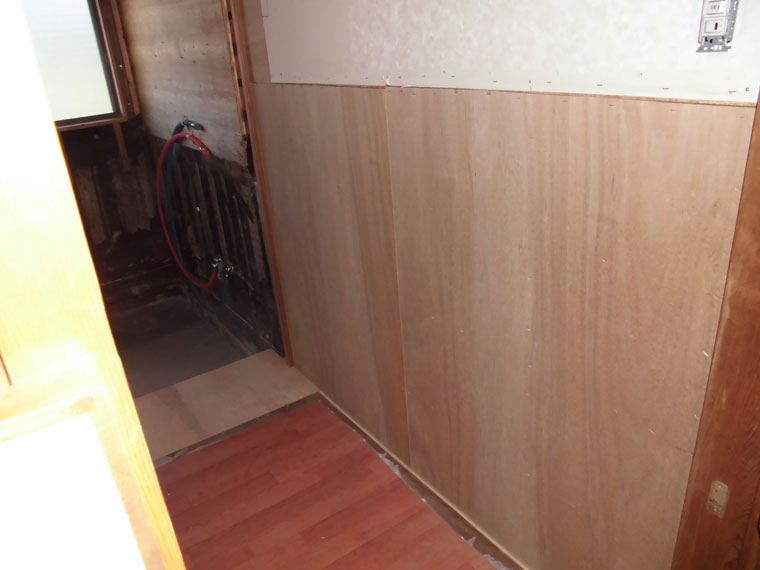 壁の下地を入れなおしたりして壁を貼って床も補修しました。